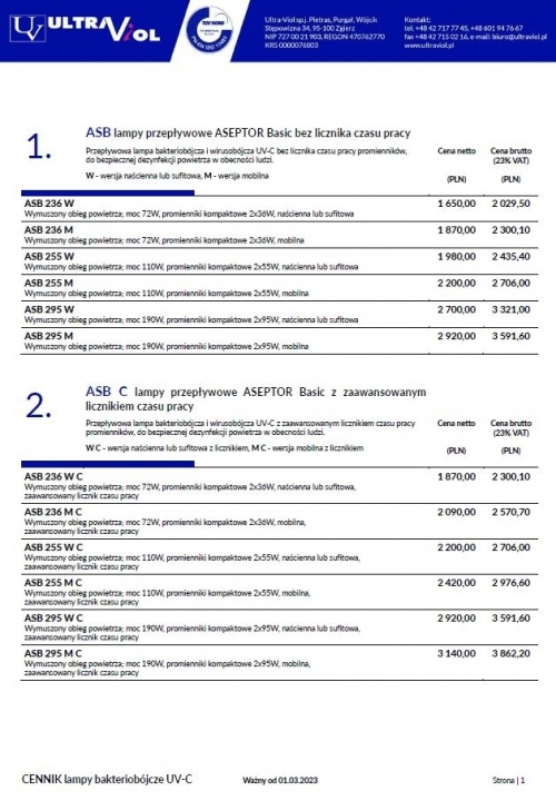 Lampy bakteriobójcze przepływowe ASEPTOR