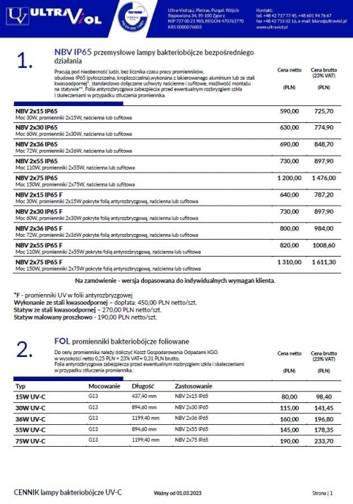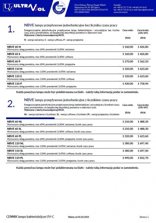 Lampy bakteriobójcze bezpośredniego działania - NBV