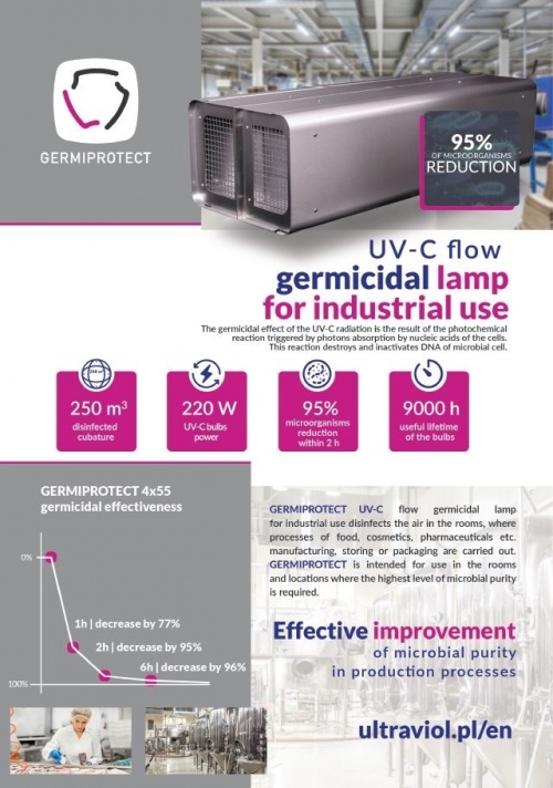 GermiProtect GP4x5 - industrial germicidal UV-C lamp for disinfection in large volume industrial rooms