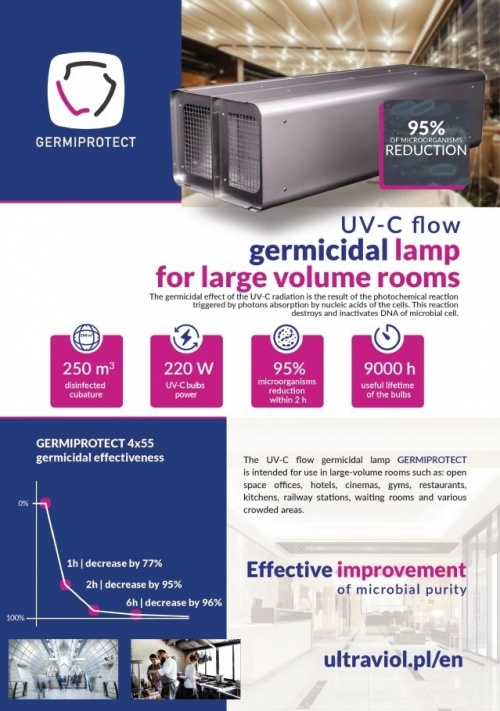 GermiProtect GP4x5 - germicidal UV-C lamp for disinfection in large volume rooms