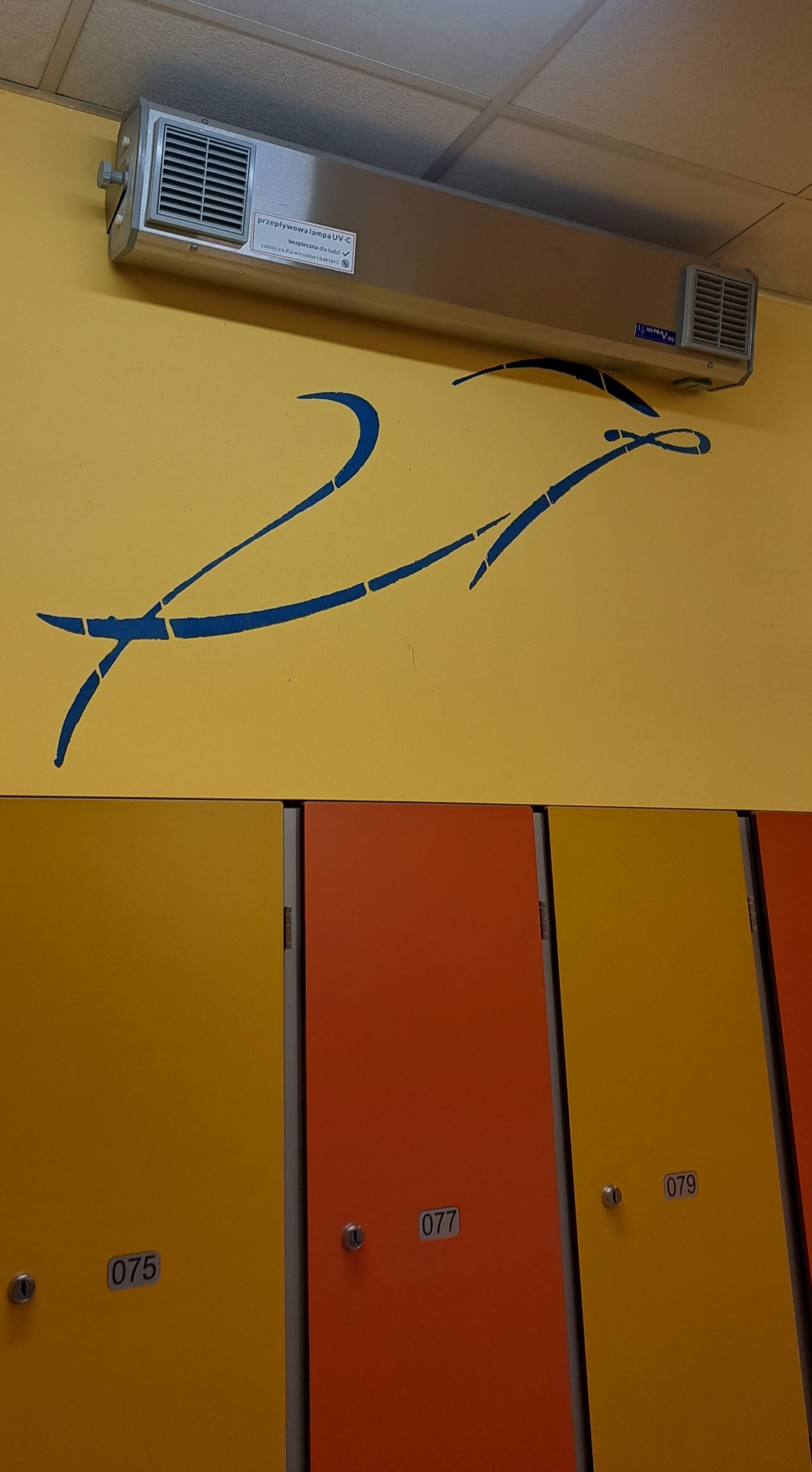 Przepływowa lampa bakteriobójcza NBVE 110 NL (naścienna z licznikiem czasu pracy) dezynfekuje powietrze w szatni pływalni