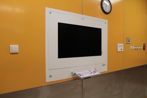 The DICO station type 1M is a complete medical computer (also known as a digital negatoscope) with a washable medical keyboard with a touchpad (the possibility of connecting a mouse). The device is intended to be installed in operating theaters.