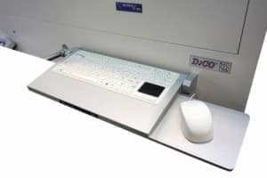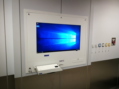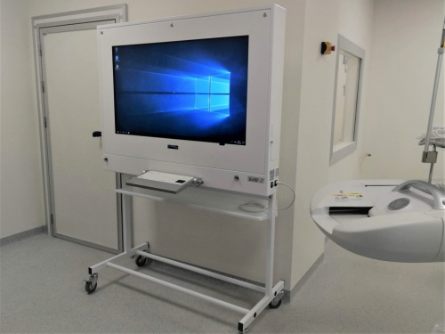 The DICO station type 2M is a complete medical computer (also known as a digital negatoscope) with a washable medical keyboard with a touchpad (the possibility of connecting a mouse). The device is intended to be installed in operating theaters.