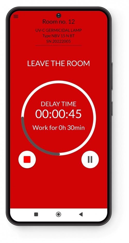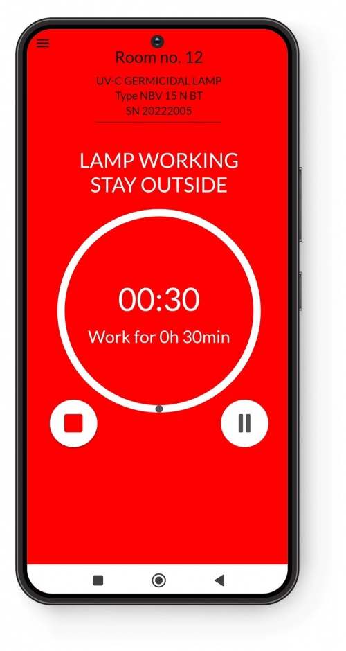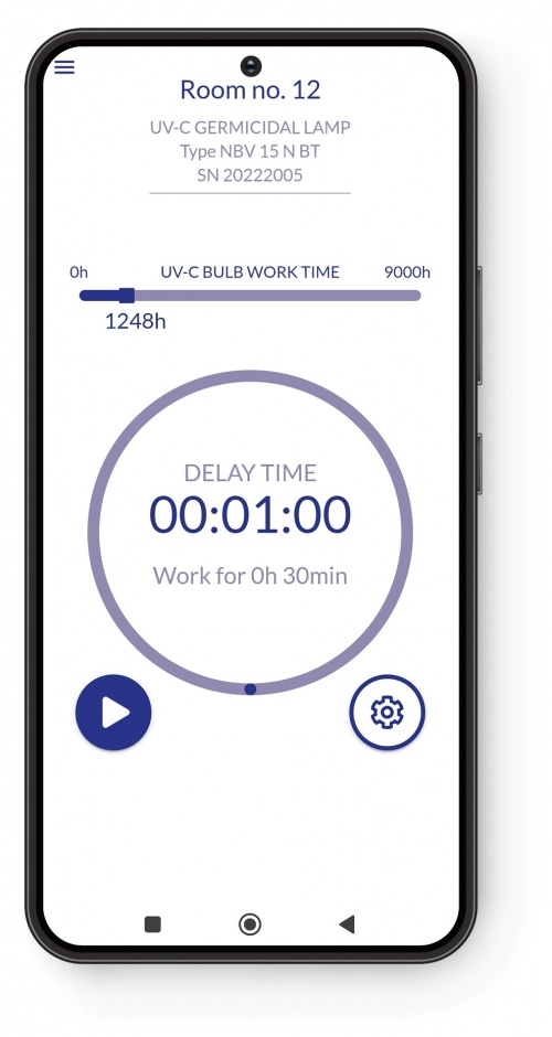 UV-C radiation is extremely effective in killing microorganisms, which is why it is used in disinfection. At the same time, it should be remembered that in direct contact it is also very dangerous and harmful to human skin and eyes. Therefore, when irradiating rooms with an multidirectional germicidal lamp, care should be taken. Safe use of the NBV 8x75 P BT is possible thanks to the smartphone and tablet application. The NBV app is Ultraviol's application created for remote operation of NBV germicidal lamps. After downloading the NBV app, it is recommended to rename the device for easier identification. Then, the app has to be paired with the NBV germicidal lamp.