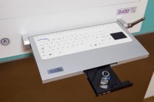 Stacja Pielęgniarska – jest kompletnym urządzeniem All In One przeznaczonym do pracy na salach operacyjnych, salach zabiegowych, w pomieszczeniach o podwyższonym standardzie czystości mikrobiologicznej, jak również na oddziałach szpitalnych. Stacja wyposażona jest w system komputerowy oparty na architekturze min. Intel i3 (na życzenie możliwość zastosowania procesora i5, i7), wydajną kartę graficzną oraz klawiaturę medyczną silikonową z touchpadem lub półką pod silikonową myszkę medyczną.
