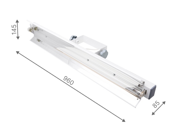 - natężenie promieniowania UV-C w odległości 1 m: 3,6 W / m2