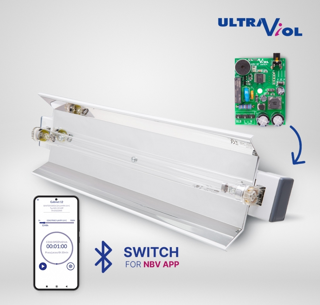 Lampa bakteriobójcza NBV 15 S z modułem zdalnego sterowania BT Switch obsługiwany aplikacją NBV App na smartfona