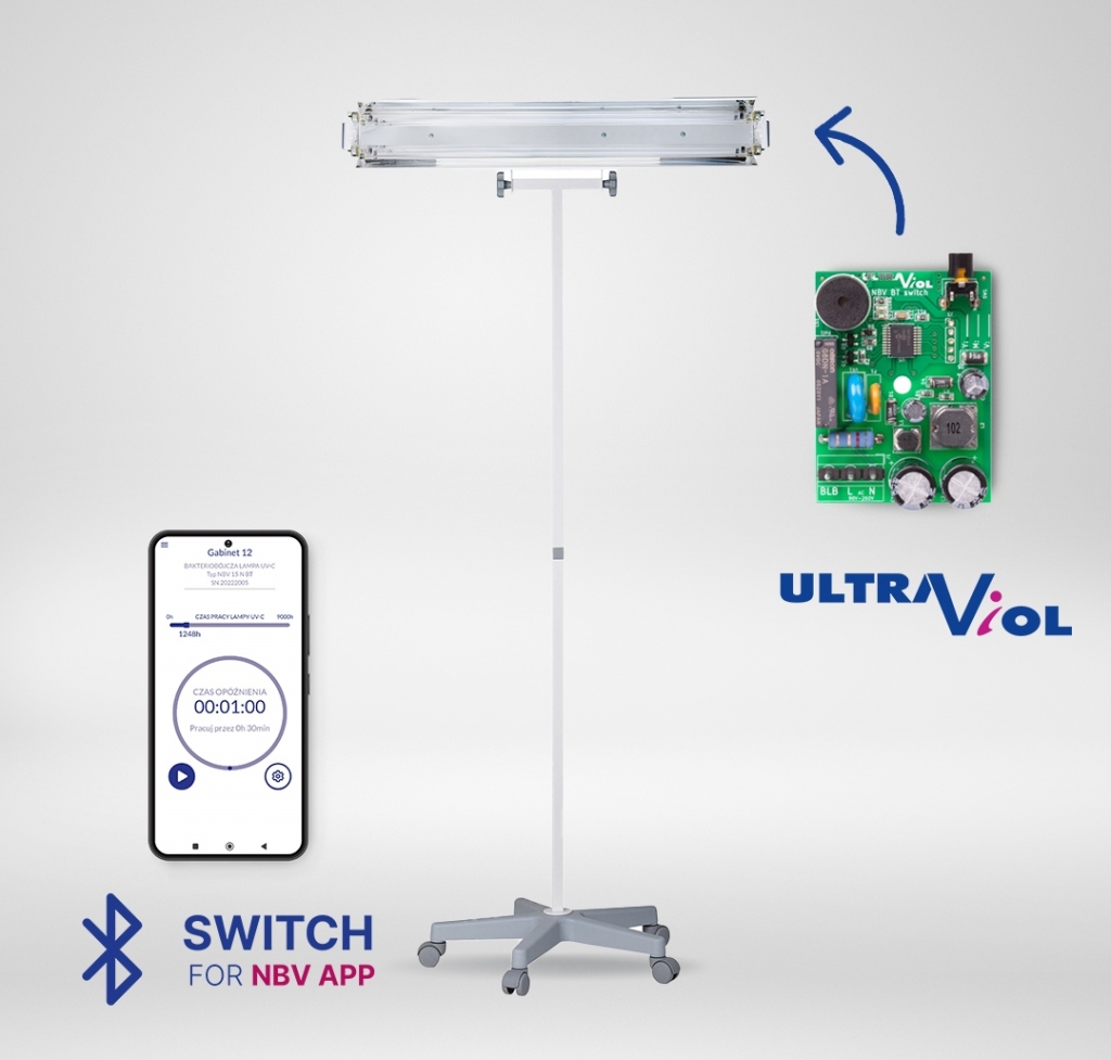 Lampa bakteriobójcza NBV 30 P z modułem zdalnego sterowania BT Switch obsługiwany aplikacją NBV App na smartfona