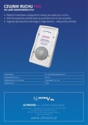 Czujnik Ruchu MD w momencie gdy wykryje ruch w pomieszczeniu wyłącza promiennik, w celu zabezpieczenia personelu lub pacjentów przed bezpośrednim promieniowaniem UV-C jednocześnie emitując ostrzegawczy sygnał. W przypadku opuszczenia pomieszczenia przez personel promiennik po chwili zostaje ponownie załączony do pracy.