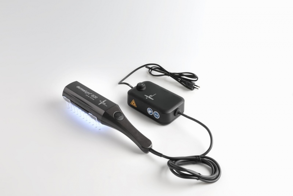 DermalightR 80R BASIC wyposażony jest w promiennik UVA-1 lub UVB-311 nm lub światło Wooda, które pozwalają wykonać szeroki zakres działań terapeutycznych. Łatwy w obsłudze i czyszczeniu dermalightR 80 jest idealny do terapii domowej.