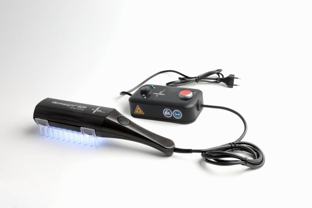 DermalightR 80R PLUS wyposażony jest w promiennik UVA-1 lub UVB-311 nm lub światło Wooda, które pozwalają wykonać szeroki zakres działań terapeutycznych. Łatwy w obsłudze i czyszczeniu dermalightR 80 jest idealny do terapii domowej.