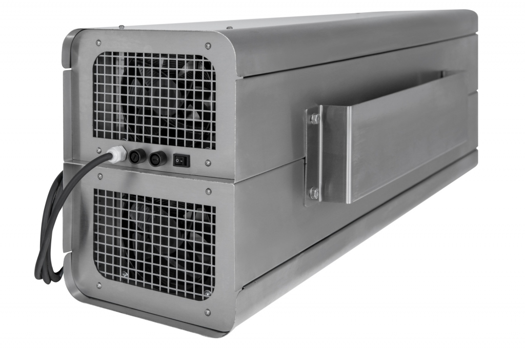 Przemysłowa przepływowa lampa wirusobójcza i bakteriobójcza GERMIPROTECT 4x55 służąca do skutecznej dezynfekcji powietrza, dekontaminacji pomieszczeń z wykorzystaniem lamp UVC.
