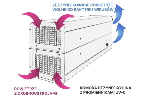 Zasada działania przepływowej lampy wirusobójczej GERMIPROTECT GP4x55